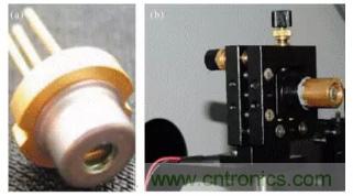 圖10 (a)半導(dǎo)體激光二極管;(b)裝配散熱銅柱及可調(diào)底座