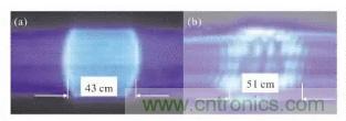 圖11 LD光束經(jīng)準(zhǔn)直及擴(kuò)束后在(a)50cm和(b)2500cm處光斑形狀