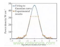 圖12 光束功率密度離散點(diǎn)擬合為高斯曲線