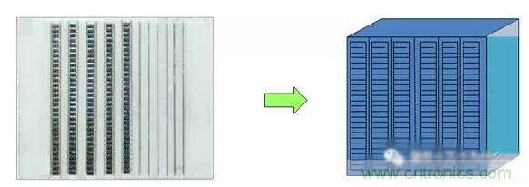 【制造方式】用折條機(jī)按照基板上原有的分割痕將基板折成條。