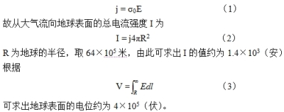 很多人都不清楚,地球也是一個帶電體。根據(jù)實驗測試,在地球表面存在一個垂直向下的穩(wěn)定電場,電場強度E約為100伏/米,場強的大小隨高度的增加而減弱。另外,根據(jù)實驗測試,在地面附近大氣的電導率σ0約為3×10-14西蒙/米,且隨高度的增加而增加。由此可知地球表面的電流密度j的方向指向地心,大小為: