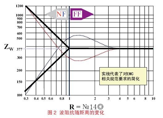 在靠近源的區(qū)域,電場和磁場的關(guān)系非常復(fù)雜;盡管既有電場又有磁場,但該區(qū)域要么基本體現(xiàn)為電場要么基本體現(xiàn)為磁場。在遠(yuǎn)離源的區(qū)域,電場和磁場的關(guān)系變得穩(wěn)定了,即E/H=120π。電場和磁場的這種關(guān)系如圖2 所示。EMC從業(yè)者通常采用簡化和近似的距離,即R=λ/2π,并認(rèn)為場在該處出現(xiàn)從近場到遠(yuǎn)場轉(zhuǎn)變。這個公式的前提假設(shè)是源結(jié)構(gòu)的尺寸小于半個波長。天線的設(shè)計(jì)者們所尋求的更加精確的表達(dá)式可能會成為上述觀點(diǎn)的一個例外情況。[page]