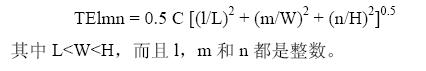 對于一個簡單的矩形殼體(尺寸為L,W,H,單位是米),各諧振頻率可以通過下面的表達(dá)式計(jì)算得到