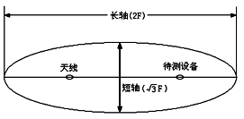 10kHz~1000MHz頻段的輻射測(cè)試場(chǎng)地應(yīng)該是一個(gè)空曠、平坦的場(chǎng)地,在其邊界范圍內(nèi)無架空線,附近無反射結(jié)構(gòu)物(如鋼筋水泥建筑和高大樹木等),而且具有足夠大的尺寸,使天線、試品和反射結(jié)構(gòu)物之間能充分分開。滿足標(biāo)準(zhǔn)的輻射測(cè)試場(chǎng)地應(yīng)該是一個(gè)由長(zhǎng)軸等于兩倍焦距(F)、短軸等于倍焦距的橢圓所包圍的場(chǎng)地,如圖1所示。試驗(yàn)時(shí),EUT和測(cè)量天線將分別處在兩個(gè)焦點(diǎn)上。