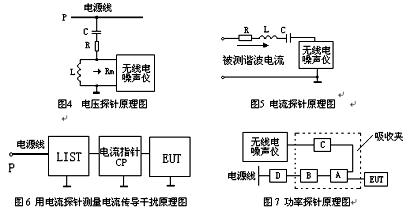 國際曾有人建議對(duì)小型電子設(shè)備采用類似于CLSPRl4一l(對(duì)應(yīng)的我國國家標(biāo)準(zhǔn)是GB4343—l《家用和類似用途電動(dòng)、電熱器具、電動(dòng)工具以及類似電路的無線電干擾特性的測(cè)量方法和允許值》)中所提供的吸收鉗(或稱為功率探針、鐵氧體鉗)方法來測(cè)試EUT對(duì)外的輻射功率。利用吸收鉗可以測(cè)量5MHz—300MHz的傳導(dǎo)干擾功率。采用此法的前提是EUT尺寸較小,其輻射到空間的能量主要是通過EUT的電源線等逸出的。因此,對(duì)這部分能量的測(cè)量可以用一個(gè)環(huán)繞電源線的吸收裝置來實(shí)現(xiàn)。這個(gè)吸收裝置便被稱為吸收鉗。這個(gè)方法的優(yōu)點(diǎn)是簡(jiǎn)便易行,對(duì)環(huán)境要求不高,在屏蔽室里便可進(jìn)行,而且測(cè)試結(jié)果有很好的重復(fù)性和可比性。電壓、電流傳導(dǎo)干擾可分別由電壓探針和電流探針測(cè)出。圖4、圖5分別為電壓探針和電流探針原理圖。圖6為電流探針測(cè)量電流傳導(dǎo)干擾原理圖。功率探針原理見圖7。