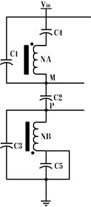 需要特別提出的是,屏蔽的作用是將各個繞組隔離開,以避免分布電容的不良影響。因此屏蔽層接到什么地方,是需要慎重考慮的,否則可能適得其反。如果圖3中的N3、N4不與NA相接,而是與N2一起接到功率地,則電容分布如圖4所示,C6、C7分別表示繞組NA的上下端與屏蔽層N3間,也就是功率地間的分布電容(實際上C6、C7分別是包含了圖2中C4、C1后的等效電容)。