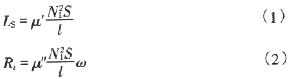 通過上式把磁學(xué)參數(shù)與電學(xué)參數(shù)直接聯(lián)系起來。它表示磁性材料的磁性參數(shù)在電路中充當(dāng)?shù)慕巧?。?1)表述電路中的電感直接與磁材料的彈性磁導(dǎo)率μ′有關(guān),表示器件的儲能大小與頻率無關(guān)的純電感性。而電路中電阻R與磁性材料復(fù)數(shù)磁導(dǎo)率的虛數(shù)部分μ″有關(guān)。式(2)則既與材料的渦流損耗、磁滯損耗及剩余損耗等有關(guān),并且與頻率也有關(guān)。反映在電學(xué)上就相當(dāng)于等效電阻R。