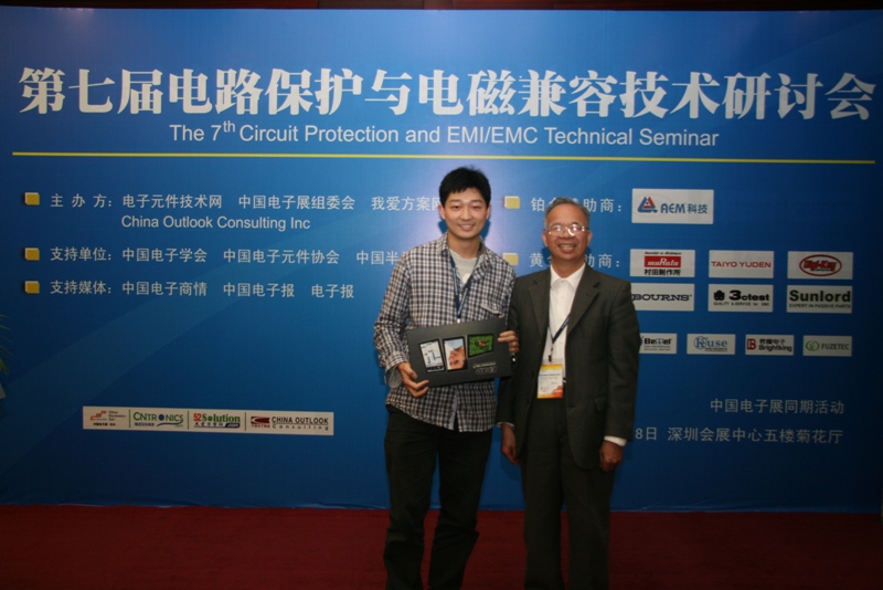 會議最后,進行由日本太陽誘電贊助的平板電腦大抽獎活動,華為公司EMC工程師張連名獲得了大獎。