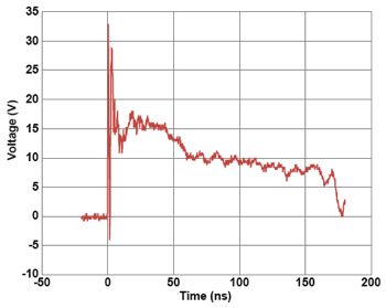 安森美半導(dǎo)體的ESD鉗位性能備受業(yè)界推崇,鉗位性能可從幾種方法觀察和量化。使用幾個標準工具即可測量獨立ESD保護器件或集成器件的ESD鉗位能力,包括ESD保護功能。第一個工具是ESD IEC61000-4-2 ESD脈沖響應(yīng)截圖,顯示的是隨時間推移的鉗位電壓響應(yīng),可以看出ESD事件中下游器件的情形。