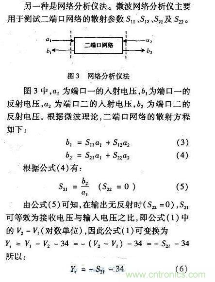 根據(jù)圖1及公式(1),我們考慮可以采用兩種儀器配置方案。一種是信號源接收機方案:在點頻上分別測得在接收機收到的信號與信號源輸出電壓(對數(shù)單位),代人公式(1)計算,得到在各頻點的傳輸導(dǎo)納值yI。這種方法的優(yōu)點是直觀簡單,但對某個探頭的傳輸導(dǎo)納作定標曲線時需要在許多頻率點測試,費時、費力,效率極低。