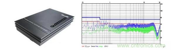 雖然電源自身電磁干擾方面投入了很大的設(shè)計(jì)成本,也符合承諾的各項(xiàng)指標(biāo)要求,但是電源在市場(chǎng)應(yīng)用方面還是難免出現(xiàn)電磁干擾超標(biāo)的問(wèn)題;此時(shí),很多的設(shè)計(jì)工程師都會(huì)認(rèn)為問(wèn)題的根源在于電源,這方面的認(rèn)識(shí)其實(shí)是有誤區(qū)的,因?yàn)殡姶鸥蓴_傳導(dǎo)騷擾測(cè)試項(xiàng)目,主要是針對(duì)電源端口的,那么電源端口就成了他的傳輸路逕,所有的電磁干擾都會(huì)經(jīng)過(guò)電源端口到達(dá)被測(cè)設(shè)備,但是測(cè)試設(shè)備測(cè)試到的電磁干擾除了來(lái)自電源本身外,主要的部分還包括整機(jī)中的其他部分產(chǎn)生的電磁干擾,以及設(shè)備內(nèi)部寄生參數(shù)的諧振產(chǎn)生的電磁干擾,這一類(lèi)電磁干擾會(huì)通過(guò)電源端口耦合到測(cè)試設(shè)備,電源內(nèi)部的濾波器是無(wú)法進(jìn)行實(shí)現(xiàn)對(duì)這部分電磁干擾進(jìn)行濾波,電源應(yīng)用環(huán)境千差萬(wàn)別,所有電源設(shè)計(jì)濾波器部分都是以解決自身的干擾為首要考慮條件的同時(shí),濾波器衰減特性及頻譜特性盡量會(huì)預(yù)留最大的余量,但不可能兼容所有應(yīng)用場(chǎng)合;那么這就要求我們的整機(jī)設(shè)計(jì)人員在設(shè)計(jì)電源前端時(shí)候,一定要按照電源廠家推薦的應(yīng)用電路進(jìn)行設(shè)計(jì),例如:LH15產(chǎn)品應(yīng)用過(guò)程中出現(xiàn)EMI超標(biāo)問(wèn)題(見(jiàn)下圖)。