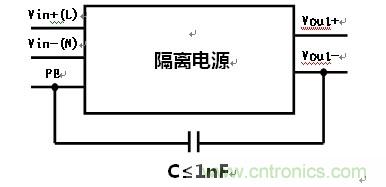 那么,如果隔離電源在應(yīng)用過(guò)程中一定要進(jìn)行輸出Vout-連接到PE端,可以按照上圖的連接思路,通過(guò)電容將這兩個(gè)端子進(jìn)行連接,這樣設(shè)計(jì)保證了客戶(hù)特殊使用要求的同事,對(duì)于上述問(wèn)題也能夠有效的規(guī)避。