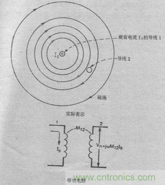 兩個(gè)導(dǎo)體相耦合的隨時(shí)間變化的磁場(chǎng),可用兩個(gè)電路之間的互感來表示,見下圖: