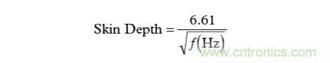 在高頻段,必須考慮一種稱為“趨膚效應(yīng)”的現(xiàn)象。趨膚效應(yīng)會引起電流流向?qū)Ь€的外表面--結(jié)果會使得導(dǎo)線的橫截面變窄,因此使直流(DC)電阻增大。雖然趨膚效應(yīng)超出了本文討論的范圍,這里還是給出銅線中趨膚深度(SkinDepth)的一個很好的近似公式(以cm為單位):