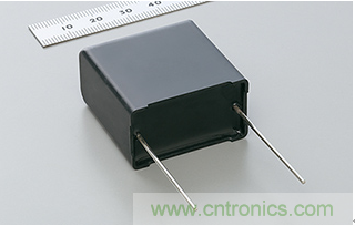 在產(chǎn)品展示區(qū),村田展示了一款可在125℃的高溫環(huán)境下連續(xù)使用的、支持自我修復(fù)功能的車載用高耐熱薄膜電容器。該產(chǎn)品是村田與指月電機(jī)制作所共同研發(fā),將類屬于熱硬化樹脂的薄膜作為介電質(zhì),可以耐高溫,非常適合未來要求更高溫保證的環(huán)保車的轉(zhuǎn)換器和電機(jī)驅(qū)動(dòng)用變換器等產(chǎn)品,樣品從2017年9月份開始提供,并將于2018年4月開始量產(chǎn)。