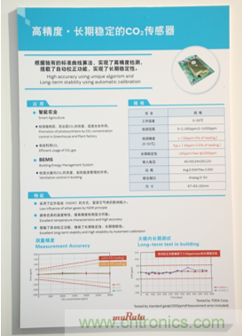 在傳感器方面,村田推出了剛剛在2017年9月份開始量產(chǎn)的高精度·長(zhǎng)期穩(wěn)定的CO2傳感器。據(jù)了解,該產(chǎn)品根據(jù)村田獨(dú)有的標(biāo)準(zhǔn)曲線算法,實(shí)現(xiàn)了高精度檢測(cè),并搭載了自動(dòng)校正功能,確保了長(zhǎng)期穩(wěn)定性,可以應(yīng)用于智能農(nóng)業(yè)和BEMS(Building Energy Management System)。在植物園、農(nóng)業(yè)園里安裝了該產(chǎn)品后,可以精準(zhǔn)檢測(cè)出園內(nèi)CO2濃度,促進(jìn)光合作用,有效利用CO2。該產(chǎn)品安裝在大樓空調(diào)系統(tǒng)用通風(fēng)管后,能夠?qū)崟r(shí)檢測(cè)大樓內(nèi)CO2的濃度,只在必要時(shí)開啟新風(fēng)系統(tǒng)進(jìn)行換氣,從而對(duì)大樓整體節(jié)能做出貢獻(xiàn),起到能源管理的作用。