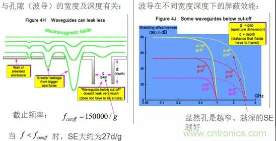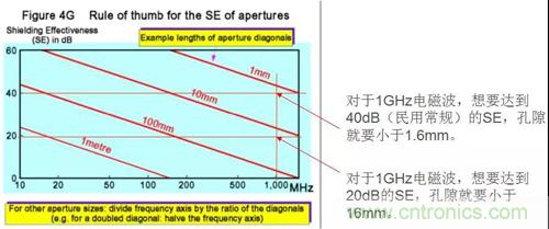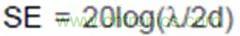 在一個完美的屏蔽殼體上開一個洞,相當(dāng)于構(gòu)成一個半波共振縫隙天線,屏蔽效能SE與孔的最大尺寸d、電磁波波長λ關(guān)系如下: