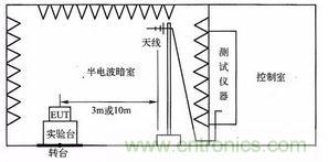 a)電場輻射:也是分臺式與落地式,與傳導(dǎo)發(fā)射相同(因為輻射發(fā)射結(jié)果與產(chǎn)品布置的關(guān)系 尤為密切,因此需要嚴(yán)格按照標(biāo)準(zhǔn)布置包括產(chǎn)品、輔助設(shè)備、所有電纜在內(nèi)的受試品);