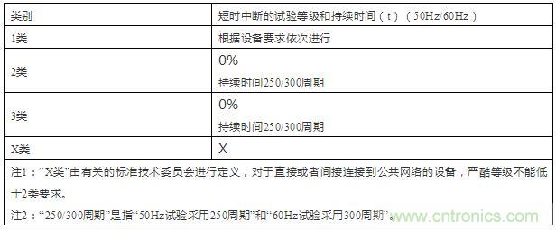 表2:短時中斷試驗(yàn)優(yōu)先采用的試驗(yàn)等級和持續(xù)時間