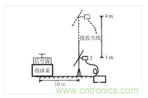 現(xiàn)將同一信號源分別放置在泡沫桌(如圖 6 所示)和木桌(如圖 7 所示)上,接收天線在距離信號源 10 m 處分別測量輻射騷擾。