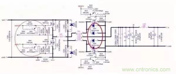 另外:原邊有一個(gè)重要的環(huán)路,PFC電容與MOS管以及變壓器,諧振電感,諧振電容構(gòu)成的環(huán)路面積??;