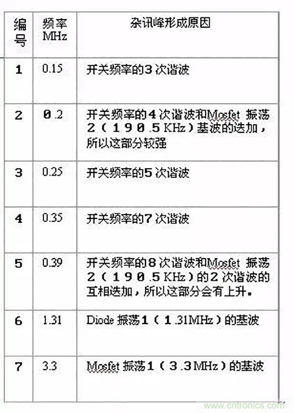 如圖:一些頻率端與開關(guān)電源產(chǎn)生部位的關(guān)系,這只是一般規(guī)律,不要完全相信;既是規(guī)律又不能盡信是為什么?規(guī)律并不是在所有情況下成立,不同電源的差異也很大,所以原理是幫你分析,而不是按照方法去硬套;