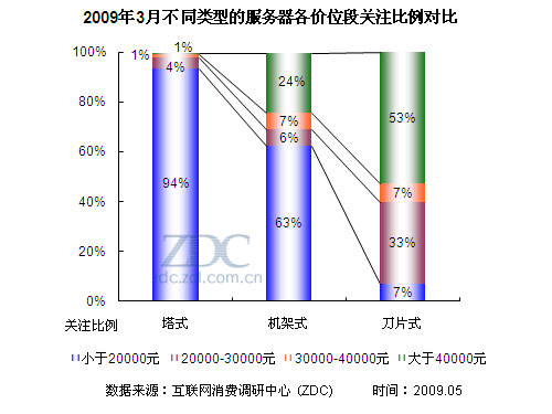 (圖)2009年3月不同類型的服務(wù)器各價(jià)位段關(guān)注比例對比