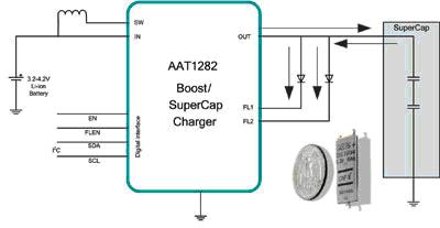 超級(jí)電容很少用在便攜式系統(tǒng)中。它們的應(yīng)用通常局限于備份或待機(jī),這些功能使用相對(duì)較低電流,并需要相當(dāng)長(zhǎng)充電時(shí)間。通過整合最新推出的升壓轉(zhuǎn)換器和超級(jí)電容,設(shè)計(jì)師現(xiàn)在可以創(chuàng)建緊湊的解決方案。