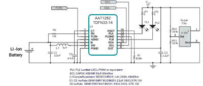 為更好地實(shí)現(xiàn)這一目標(biāo), AAT1282具有防止啟動(dòng)時(shí)過大尖峰電流沖擊的內(nèi)置電路、一個(gè)固定的800mA輸入電流限制器、以及一個(gè)超級(jí)電容充滿電后的負(fù)載斷開電路。其輸出電壓受限于內(nèi)部過壓保護(hù)電路,可防止轉(zhuǎn)換器和超級(jí)電容免受一個(gè)開路LED(開路條件下)的損害。