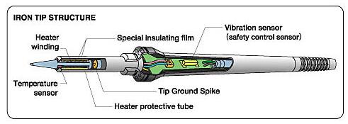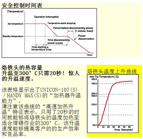 • 具備節(jié)能功能。當一段時間不使用烙鐵時加熱器溫度會自動降低至設定的作業(yè)準備溫度。 ( 當拿起烙鐵手柄時溫度會自動上升恢復至設定的作業(yè)溫度 )