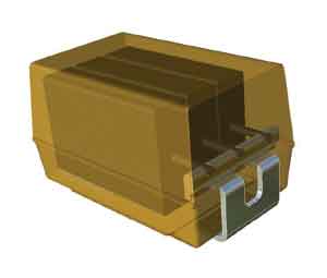 縱向設計的結(jié)構(gòu)中,一個陽極通過電極銀膠環(huán)氧樹脂連接到第二個,再到另一個電極引線框。同樣的做法被使用于標準的單陽極電容中,因此其制造技術與舊有的類似,無須為多陽極設計的新技術環(huán)節(jié)追加很多額外投資。