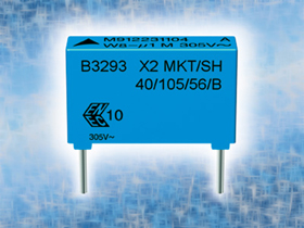B3293*系列MKT薄膜電容器的電容范圍在0.1至10 µF之間,設計適用于標稱交流電壓為305V的環(huán)境,符合IEC 60384-14規(guī)則要求。最大工作溫度為105°C。電容達2.2 µF的各型號產(chǎn)品已通過X2安全認證(IEC 60384-14 / EN 60384-14)。