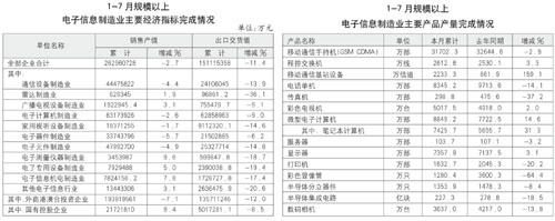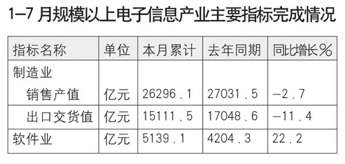 1-7月規(guī)模以上電子信息產業(yè)主要指標概覽