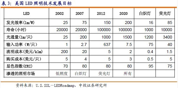 LED照明在2007年開(kāi)始滲透進(jìn)入白熾燈照明市場(chǎng)、2012年進(jìn)入熒光燈照明市場(chǎng),而大量取代白熾燈和熒光燈將分別在2012年和2020年。