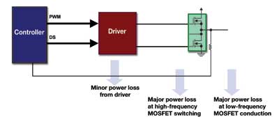 降壓或同步降壓電路是所有低電壓DC/DC功率管理系統(tǒng)的重負荷部件,而所有同步降壓電路中的主要功率損耗來自MOSFET的開關(guān)和傳導(dǎo)損耗。