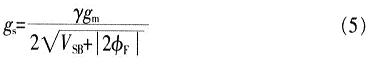 圖2中,gsVs表示第2個壓控電流源,模擬漏極電流id上的體效應(yīng)。當(dāng)源極與地相連時,或其電壓不變化時,此電流源可忽略。當(dāng)體效應(yīng)不能忽略時,則有: