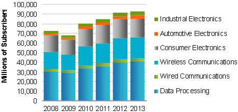 - 全球半導(dǎo)體市場(chǎng)2010年也將增長(zhǎng)13.7% 到2610億美元