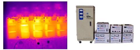 UPS電源模塊通過紅外熱成像儀測試客戶的UPS電源模塊,可以明顯看出溫度分布的不均勻,個(gè)別器件發(fā)熱偏高。蓄電池是UPS系統(tǒng)中的一個(gè)重要組成部分,它的優(yōu)劣直接關(guān)系到整個(gè)UPS系統(tǒng)的可靠程度,然而蓄電池卻又是整個(gè)UPS系統(tǒng)中平均無故障時(shí)間最短的一種器件,其發(fā)熱直接影響到電池乃至UPS系統(tǒng)的壽命。