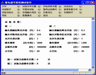 一是實時檢測與處理程序,包括了試驗參數(shù)的設(shè)置,對試驗狀態(tài)以及失效數(shù)據(jù)的保存,對失效數(shù)據(jù)進行數(shù)學分析,打印報表等,檢測裝置記錄的失效數(shù)據(jù)有失效時間,失效試品號、觸點號,觸點失效的類型,失效時觸點電壓以及各觸點累計失效次數(shù)等;