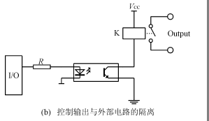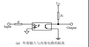 這種隔離方法是用光電耦合器把輸入信號(hào)與內(nèi)部電路隔離開來(lái),或者是把內(nèi)部輸出信號(hào)與外部電路隔離開來(lái),如圖4(a)、(b)所示。