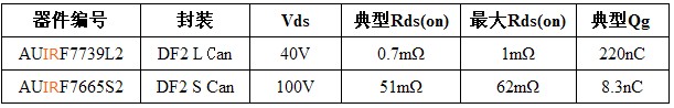 采用新款大罐式封裝的 AUIRF7739L2 具有業(yè)內(nèi)最低的導(dǎo)通電阻,在給定 PCB 區(qū)域 40V 電壓時的導(dǎo)通電阻典型值僅為 0.7mΩ 。此外,與 D2PAK 相比,大罐式封裝的占位面積可以減少60%,厚度可以降低85%。這款器件可提供卓越的功率密度和效率,非常適合高負(fù)載電機(jī)控制應(yīng)用,包括電動助力轉(zhuǎn)向系統(tǒng) (EPS) 和微型混合動力車的電池開關(guān)和集成式起動發(fā)電機(jī) (ISA) ,以及底盤、傳動系統(tǒng)和動力系統(tǒng)等。
