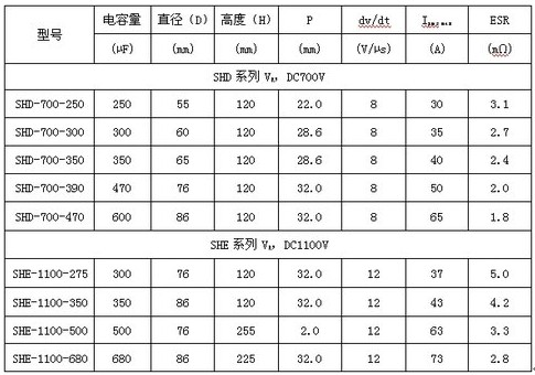 表1 EACO的SHD、SHE系列DC-Link單面金屬化聚丙烯薄膜電容器部分數(shù)據(jù)