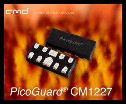 California Micro Devices推出超低電容的ESD器件CM1227,PicoGuard CM1227 ESD器件超低通道輸入電容為0.35pF,適合用于高速數(shù)字消費(fèi)電子應(yīng)用中。該器件可提供4個(gè)通道的±15kV接觸ESD保護(hù),超過了IEC61000-4-2 4級(jí)標(biāo)準(zhǔn)。