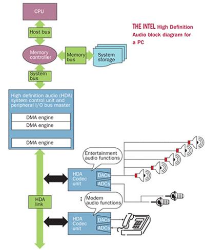 圖1:Intel公司針對PC的高清音頻系統(tǒng)框圖。