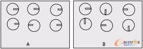 類型相似的元件應(yīng)該以相同的方向排列在板上,使得元件的貼裝、檢查和焊接更容易。例如使所有徑向電容的負極朝向板件的右面,使所有雙列直插封裝(DIP)的缺口標(biāo)記面向同一方向等等,這樣可以加快插裝的速度并更易于發(fā)現(xiàn)錯誤。如圖2所示,由于A板采用了這種方法,所以能很容易地找到反向電容器,而B板查找則需要用較多時間。實際上一個公司可以對其制造的所有線路板元件方向進行標(biāo)準(zhǔn)化處理,某些板子的布局可能不一定允許這樣做,但這應(yīng)該是一個努力的方向。