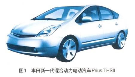 以作為混合動(dòng)力電動(dòng)汽車研發(fā)前沿的豐田汽車公司為例,所開發(fā)的混合動(dòng)力電動(dòng)汽車已達(dá)到實(shí)用化水平,自1997年所推出的世界上第一款批量生產(chǎn)的混合動(dòng)力電動(dòng)汽車Prius開始,其后又在2002年推出了混合動(dòng)力面包車,該車混合動(dòng)力系統(tǒng)采用了世紀(jì)首次批量生產(chǎn)的電動(dòng)四輪驅(qū)動(dòng)及四輪驅(qū)動(dòng)力/制動(dòng)力綜合控制系統(tǒng)。2003年,豐田又推出了新一代Prius,也被稱為“新時(shí)代豐田混合動(dòng)力系統(tǒng)——THSⅡ”(見圖1),節(jié)能效果可達(dá)到100km油耗不足3L。從2004年開始,豐田公司向歐洲市場推出了一款新的LexusRX型豪華混合動(dòng)力轎車。豐田公司計(jì)劃2012年全部采用汽油電力混合發(fā)動(dòng)機(jī),以提高燃油經(jīng)濟(jì)性和降低排放污染。