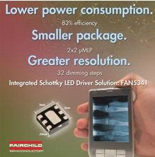 飛兆半導(dǎo)體(Fairchild ) 4月1日推出緊湊、靈活的背光照明解決方案FAN5341,滿足現(xiàn)今電池供電型便攜電子產(chǎn)品客戶對節(jié)省電能并實(shí)現(xiàn)更多功能的需求。FAN5341是高效的LED驅(qū)動(dòng)器解決方案,能夠提升便攜設(shè)計(jì)的亮度和分辨率,同時(shí)提供32級(jí)調(diào)光功能,并可驅(qū)動(dòng)多達(dá)5個(gè)串聯(lián)的白光LED。該器件通過驅(qū)動(dòng)串行LED,確保用于手機(jī)、數(shù)碼相機(jī)、GPS設(shè)備、MP3播放器及其它使用小型LED顯示屏等設(shè)備的所有LED都具備均等的亮度。