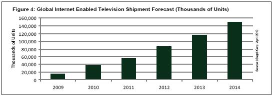 同樣,隨著品牌廠商努力延緩價格下跌速度和吸引消費者來更換其原有的老式平板電視,未來幾年對于IETV的推廣活動將會增強。iSuppli公司預(yù)測,2014年IETV市場將從2009年的1470萬臺增長到1.49億臺,復(fù)合年度增長率為58.9%。