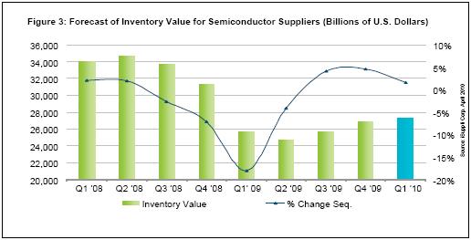 - 09年第四季度,全球所有半導(dǎo)體供應(yīng)商的庫存合計為268億美元