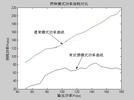 結(jié)果分析:在通常工作模式情況下,曲線的波動是由于電能轉(zhuǎn)換器的轉(zhuǎn)換效率影響造成的,由前面原理分析可知消耗功率為Pi=Po+Pw,如果轉(zhuǎn)換效率為,則Pi=Po/η,轉(zhuǎn)換效率η通常隨著輸出功率的變化有一定的波動,所以曲線的波動符合理論分析;在有反饋的工作模式情況下,由前面原理分析部分得系統(tǒng)的消耗功率為Pi=Pw+Pwf,分別設轉(zhuǎn)換器1的轉(zhuǎn)換效率為η1,反饋部分的轉(zhuǎn)換效率為η2,則系統(tǒng)的消耗功率為: